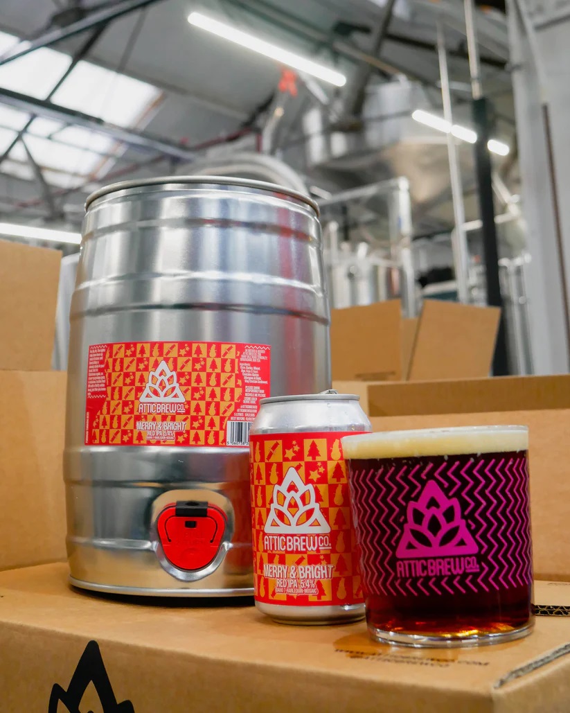 Award Winning Stirchley brewery Attic Brew Co. are championing this 5ltr mini keg (approx 9 pints) of Christmas beer, Merry & Bright. Malty with a bold hop flavour, hints of toffee and a bitter finish. Perfect for all the Christmas parties or to replace the Turkey as the centrepiece of your dinner on the big day. *Can be kept for 3 months unopened. ‘COLLECTION ONLY’.