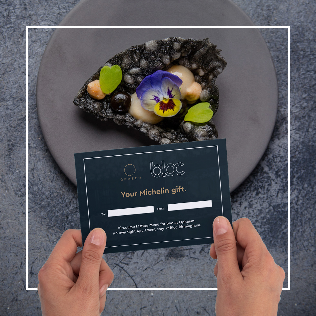 Give the gift of a Michelin-star experience this Christmas. An indulgent 10-course tasting menu for two at Opheem, followed by a relaxing overnight Apartment stay at Bloc Hotel in the heart of Birmingham’s gorgeous Jewellery Quarter. Arrive at Bloc and check-in, head to Opheem for a 10-course tasting menu for two and enjoy a late check out at Bloc until 1pm.
