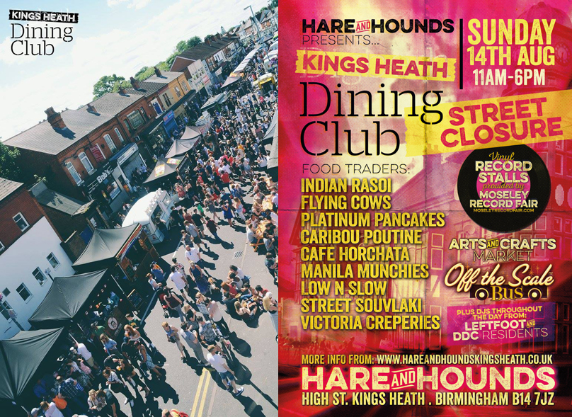 Street food innovators Digbeth Dining Club return to Kings Heath Dining Club Hare & Hounds and York Road for the final Kings Heath Dining Club street closure of the Year on Sunday 14th August.