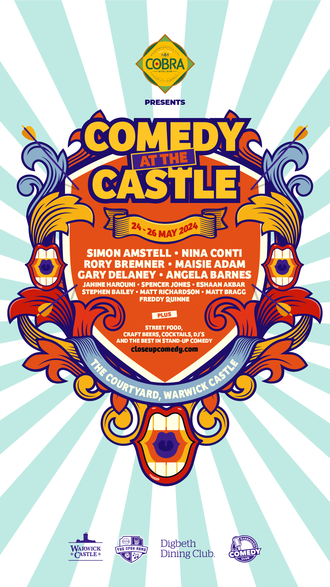– The 24-26 May event at Warwick Castle, will be renamed to ‘Cobra Beer presents Comedy at the Castle’