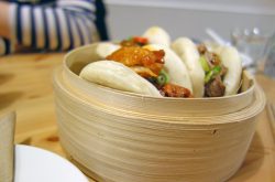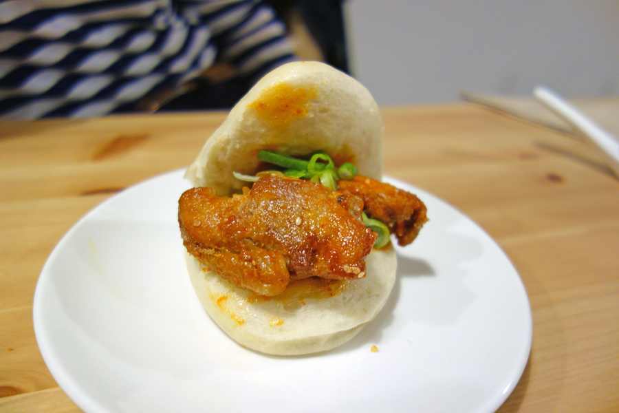 My companion got decidedly excited about the Szechuan Aubergine filling with sesame seeds, a kind of soft bun meets soft vegetable with a subtle saltiness that makes this choice a delight, further enriched by the almost sesame seasoning of the seeds. Our last bun had a Korean Fried Chicken filling that was hands down my favourite. A vibrantly orange, delicate batter coats the moist chicken pieces in a spicy, sweet glaze – super sticky and savoury.