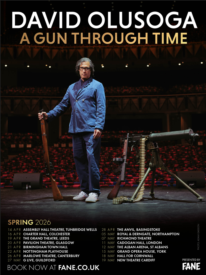 Acclaimed TV historian David Olusoga, known for his powerful BBC series A House Through Time and Black and British: A Forgotten History, has announced 2026 dates for his A Gun Through Time show.