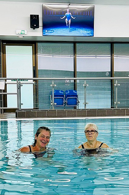 Pic 1 shows Jacqueline (right) in the pool at SAC with fellow HydroHex convert, Jill Conley.
