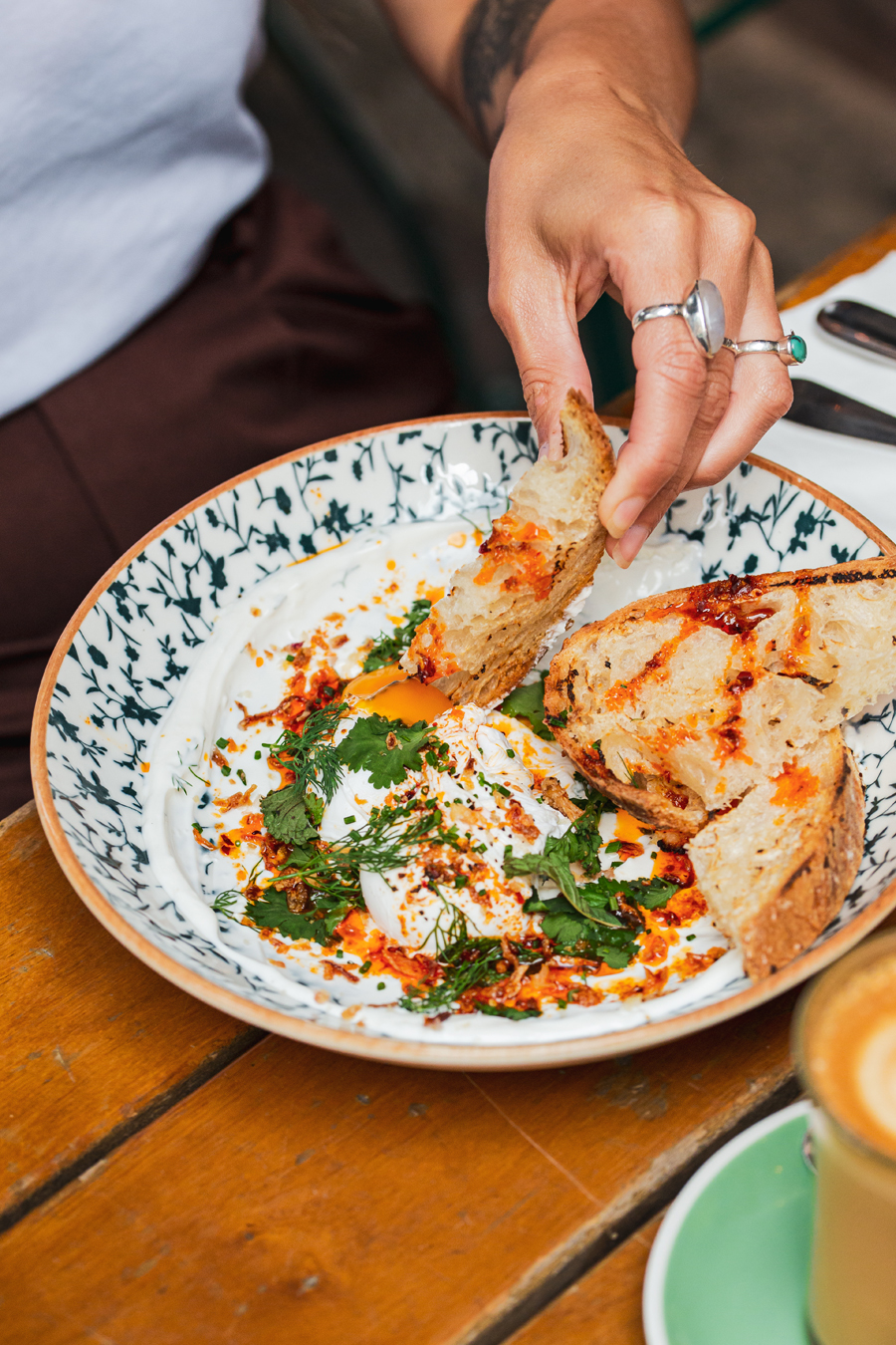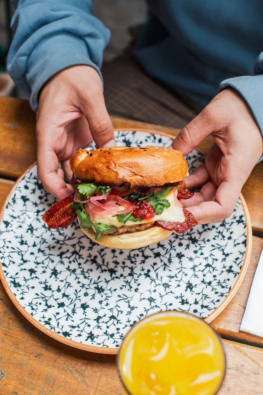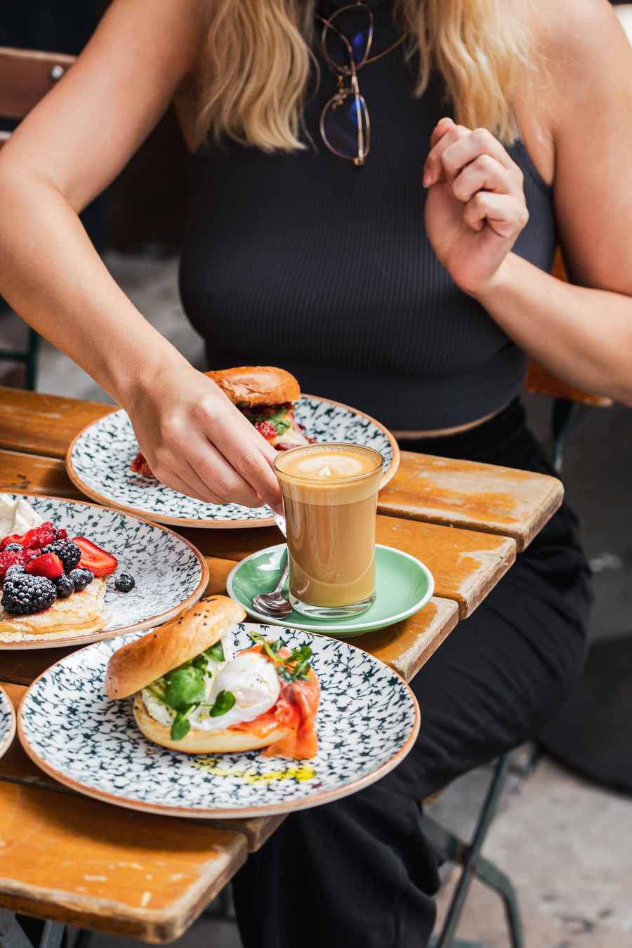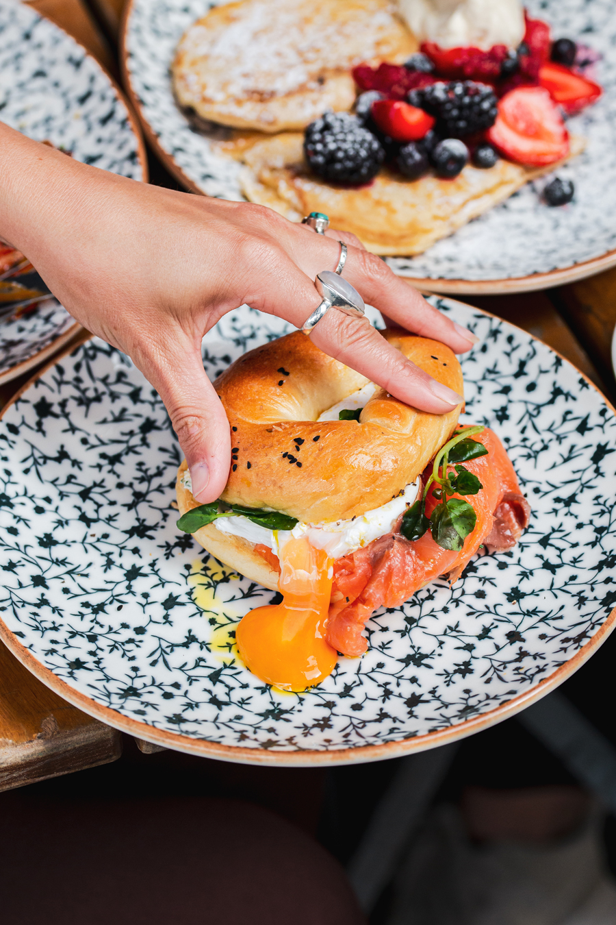Diners looking for a hearty option have a choice of the Schloss Breakfast Bagel (soft chive omelette, Haus chilli jam, gouda, coriander and pink pickled onions served on a Haus-baked poppy seed bagel), The Royale (Yorkshire streaky bacon and round bratwurst) or The Royale Garten (slow roasted portobello mushroom and smashed avocado).
