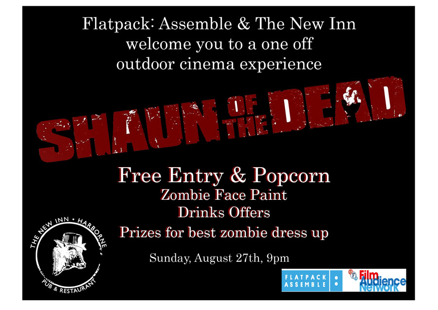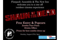 Then to celebrate the Bank Holiday Sunday, The New Inn and Flatpack: Assemble invite you to a free screening of “Shaun of the Dead” in the garden.