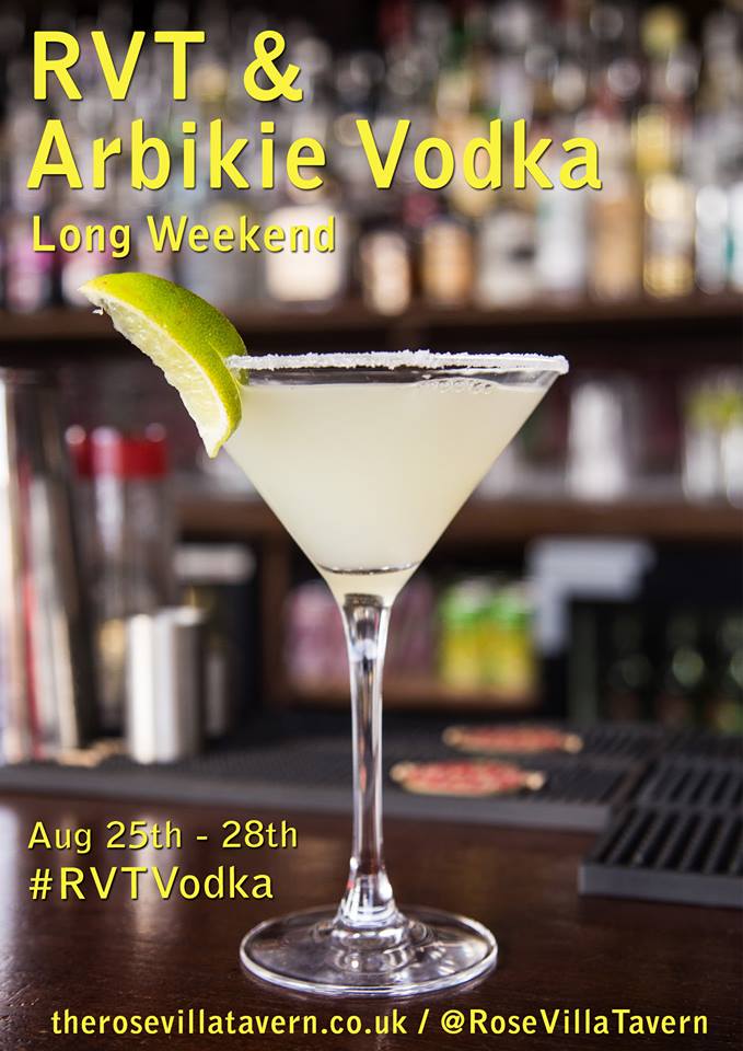 Raise a glass of vodka with The Rose Villa Tavern! To make the most of the last long weekend before the mulled wine season, The Rose Villa Tavern will be mixing and shaking vodka cocktails with a menu by Arbikie Vodka !