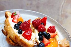 Bakery items include pain au chocolat, brownie balls, Oreo and Twix brownie, pain au raisin, Bakewell tarts and millionaire’s shortbread.