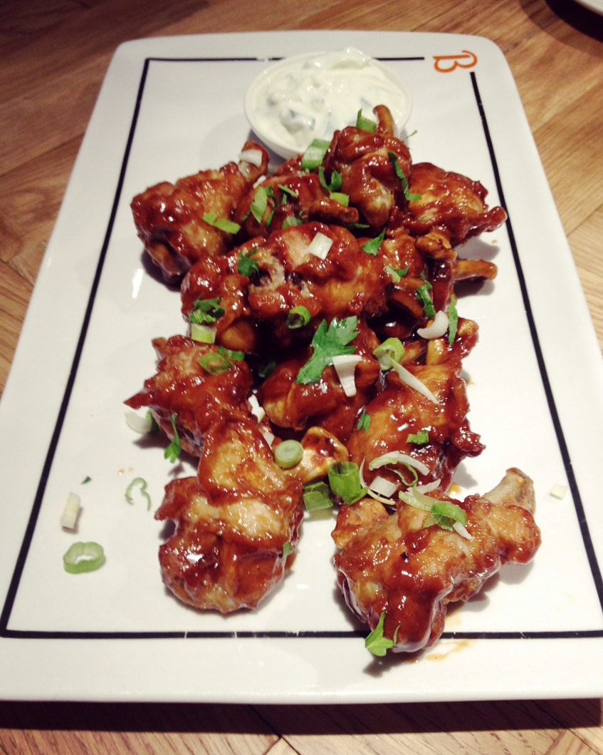 To begin, we shared a large plate of Chicken Wings with Raspberry.
