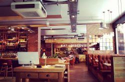 Upon entering the restaurant there has been a minimal yet warm, stylish approach to decor. Light wood paneling frames the exposed brick walls with ample yet unfussy lighting. The interior is comfy with a slightly New York feel. It’s a great location, with passers-by hinting at the city centre bustle outside, which you notice through the large plate glass windows.