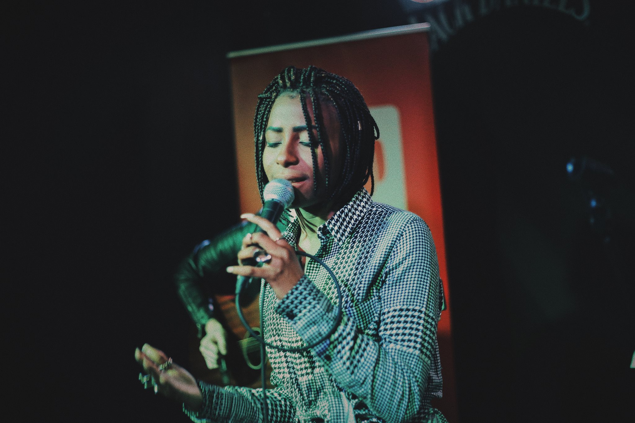 Next was Cardiff’s Kizzy Crawford who looks so effortlessly cool with her boho dress and acoustic guitar. Being from Wales it would be a lie to say I wasn’t especially excited to hear her as I knew she would be singing some of her songs in the Welsh language. She did this, but also transitioned from Welsh to English so effortlessly and unnoticeably, so the 99% of the non welsh speakers of the audience didn’t feel disconnect from the song. A real skill. “Golden Brown” was a highlight of her set; a song about being proud of who you are in your own skin. We were expecting a voice and a guitar, but we got so much more, including keys and loop pedals making her performance captivating and mesmerizing.