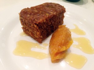 Desserts were both equally delicious, carrot cake with rum syrup and hazelnut sponge with salted caramel. Both came with apricot puree instead of the Chantilly cream on the menu to make them vegan and I think this is most likely an improvement.