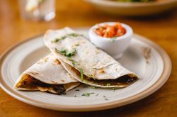 Crunchy fried tortillas piled high with molten cheese, creamy homemade guacamole, punchy salsa, sour cream and crunchy jalapenos. A queso filled mini quesadilla was creamy and delicious. The portions are generous, so after having practically licked the plates of our starters we were feeling rather full.