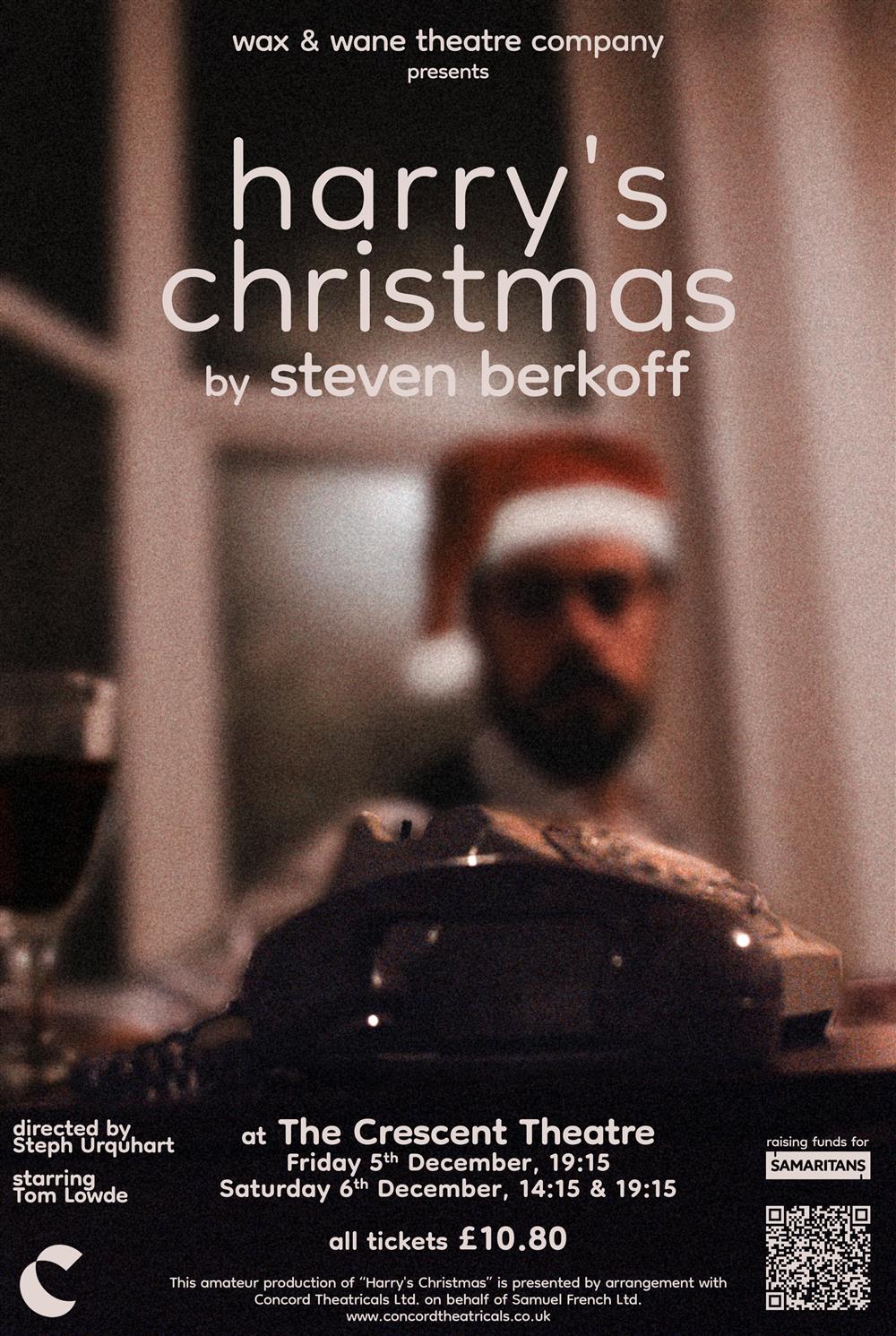 Birmingham-based Wax & Wane Theatre Company’s production of Steven Berkoff’s one-act play ‘Harry’s Christmas’ opens on 5th Dec – 6th Dec at the Crescent Theatre