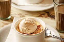 The traditional bread-and-butter pudding is given a festive twist. Bun Maska is baked with a mingling of nuts and custard, with lots of nutmeg and a hint of cardamom. Served with a scoop of cinnamon ice cream to finish. 7.50