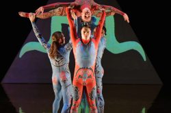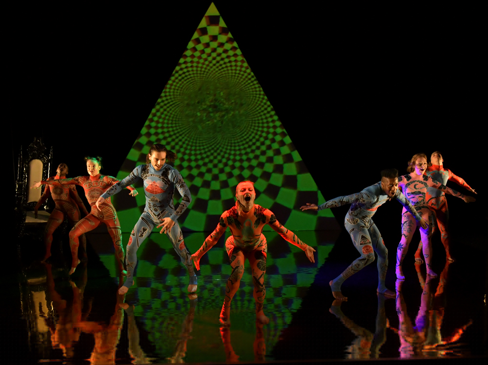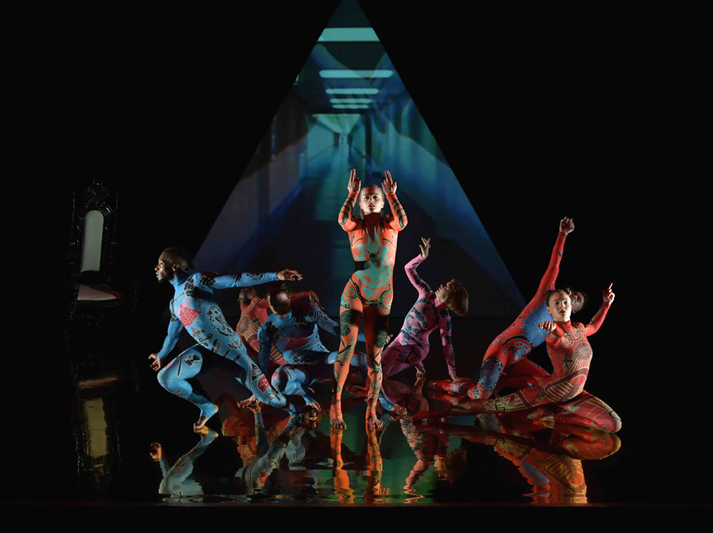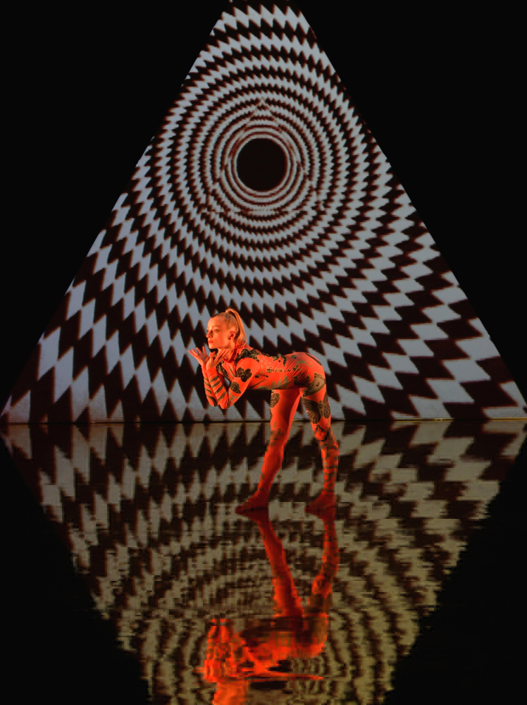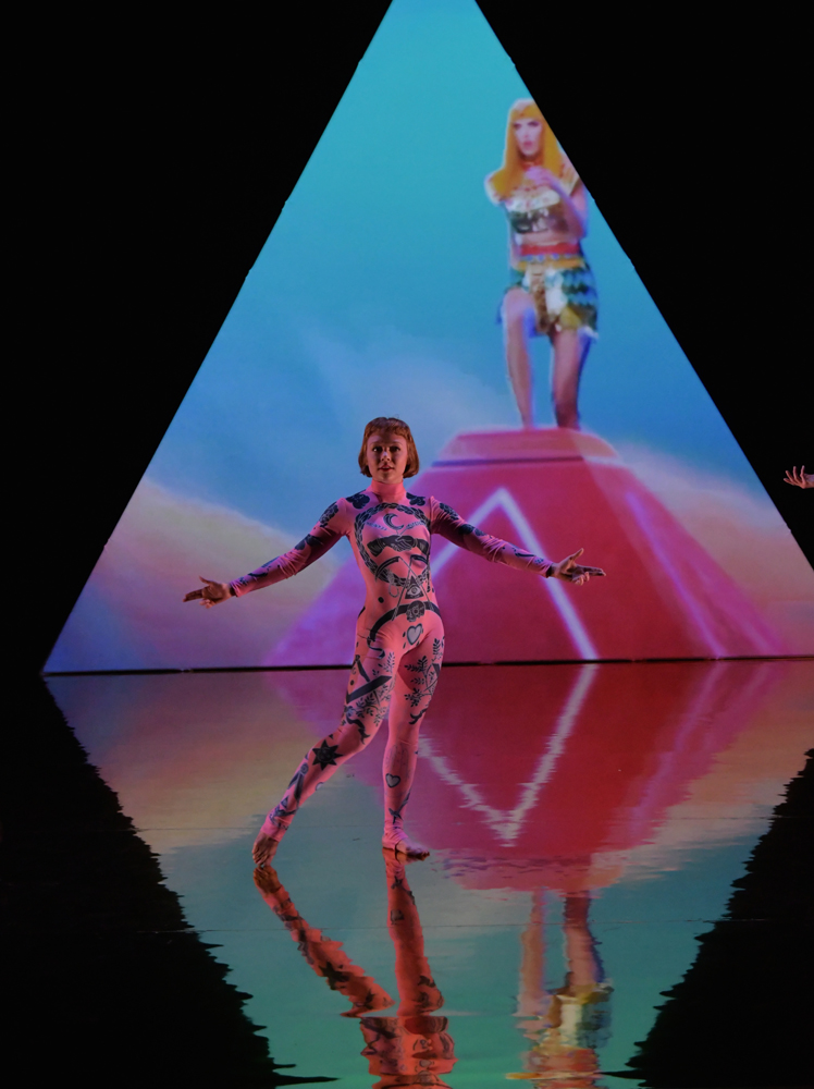 The show features costumes from Lady Gaga’s designer Gary Card, a gold mirrored stage, hypnotic triangular projections by Louis Price, a pulsing soundtrack of American trap music and a mesmerising score by electro-acoustic composer and University of Birmingham lecturer Dr Annie Mahtani.