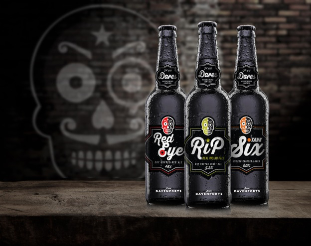 Dares beers are an eclectic trio of wickedly brewed flavoursome modern craft beers. They comprise of RIP, an interpretation of a real Indian Pale Ale, dry hopped with Chinook Hops. Red Eye a ravishing Red Amber Ale, dry hopped with Cascade and 6IX a premium 6% craft lager combining the best of English and German hops.