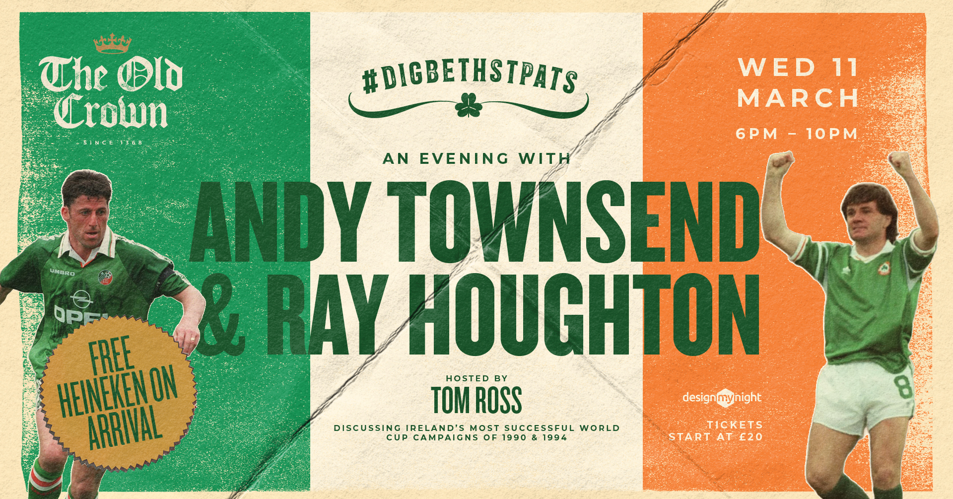 Wednesday 11th March: An Evening with Andy Townsend & Ray Houghton (Former professional Irish footballers)