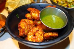 Ollie savoured the Bhel, cold and crunchy, puffed rice, peanuts and Bombay Mix tossed with fresh pomegranate, tomato, onion, lime, tamarind, mint. I’d tried this before at Dishoom and it seems Ollie was won over in equal measure.