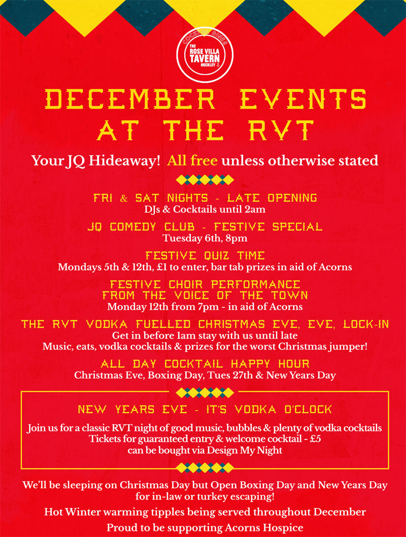 The RVT vodka fuelled Christmas Eve, Eve lock-in – Join us before 1 am for a crazy vodka-fuelled party before the big day!