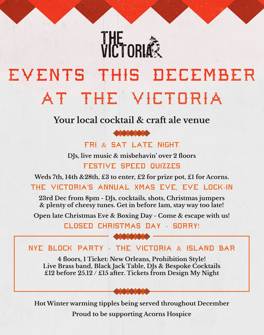 Victoria’s annual Xmas Eve, Eve Lock – In – Starting from 8pm, there will be plenty of cheesy tunes, DJs, Cocktails & shots! And don’t forget your Xmas Jumper, it is a must have! Get in before 1 am and stay way too late…