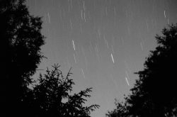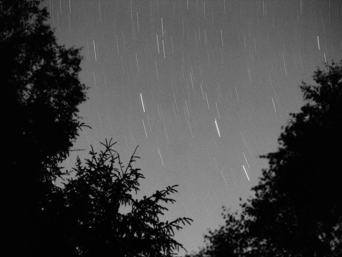 Commonly used within the field of astronomy to view distant galaxies and nebulae, infrared photography allows us to see phenomena in a way we would not usually see with the naked eye. Similarly, long exposures of the stars allow us to see streaks of ancient light in the sky as the Earth turns on its axis. King is interested in the relationship between astronomy, photography and materiality, in particular the innate connection between the photograph as object and the Earth itself.
