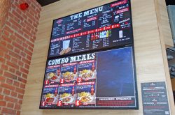 The take-away is nicely designed with modern clean interior, you can see the food being prepared in full view by staff in branded wear. There’s a great circumspection from inside looking out over the Floozy In The Jacuzzi, Victoria Square and New Street.