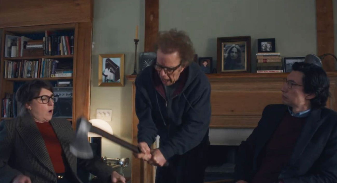 The first, Father, has siblings Emily (Mayim Bialik) and Jeff (Adam Driver) driving in a leased hybrid Range Rover to reluctantly visit their ageing father (Waits) at his run down back of beyond home, bring with them a gift box of groceries. They sip water, then tea, the conversations are strained and of few words, he declining to engage. They notice the Rolex which he says is a cheap knock off. Not having seen him since had an ‘episode’ at their mother’s funeral, concerned that his health is failing, they ask about medications and he reels off a list of drugs he’s not taking. Worried about his finances, Jeff’s been sending funds over the years and presses notes into his hand when they leave. As they drive away, the film switches back to dad, wryly upending everything you thought you knew.