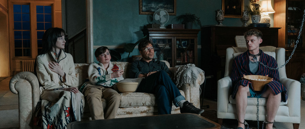 Taking a cue from Clockwork Orange and attempting be a British Jordan Peele, directed by the Polish filmmaker Jan Komasa from a script by Bartek Bartosik and Naqqash Khalid, this stars Anson Boon as Tommy, a 19 year-old drunken, drug snorting delinquent who terrorises his local community. Until, that is, he’s kidnapped and awaked chained in a basement of some sprawling country estate where Chris (Stephen Graham), physically and psychologically fragile wife Kathryn (Andrea Riseborough) and eager to please son Jonathan (Kit Rakusen) aim to rehabilitate him through motivational tapes, forcing him to watch Tik Tok videos of his assaults, a family viewing of Kes and Pavlovian punishment and rewards. Also part of the household is Rina (Monika Frajczyk), a Macedonian with dubious immigration status who Chris has blackmailed to be their cleaner accomplice. Initially lashing out with verbal threats, Tommy slowly appears to change his attitudes, earning himself limited access to other rooms via a system of gutters and a longer chain.