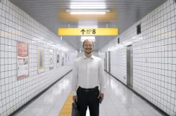 In the first chapter, he’s constantly encountering The Walking Man (Yamato Kochi), a balding, bearded unresponsive figure in a white shirt clutching a briefcase and a mobile phone who gets his own brief flashback chapter, Subsequently, he meets The High School Girl (Kotone Hanase), The Woman (Nana Komatsu) who could be an apparition of his girlfriend or the mother of The Boy (Naru Asanuma) who ran away from her and was following The Walking Man who abandoned him, resulting in them both becoming trapped in the loop. The Boy gives the Lost Man a hermit crab shell for good luck.
