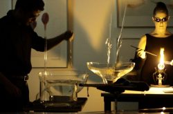 A spellbinding performance with fire, live and electronic music and glass blowing.