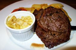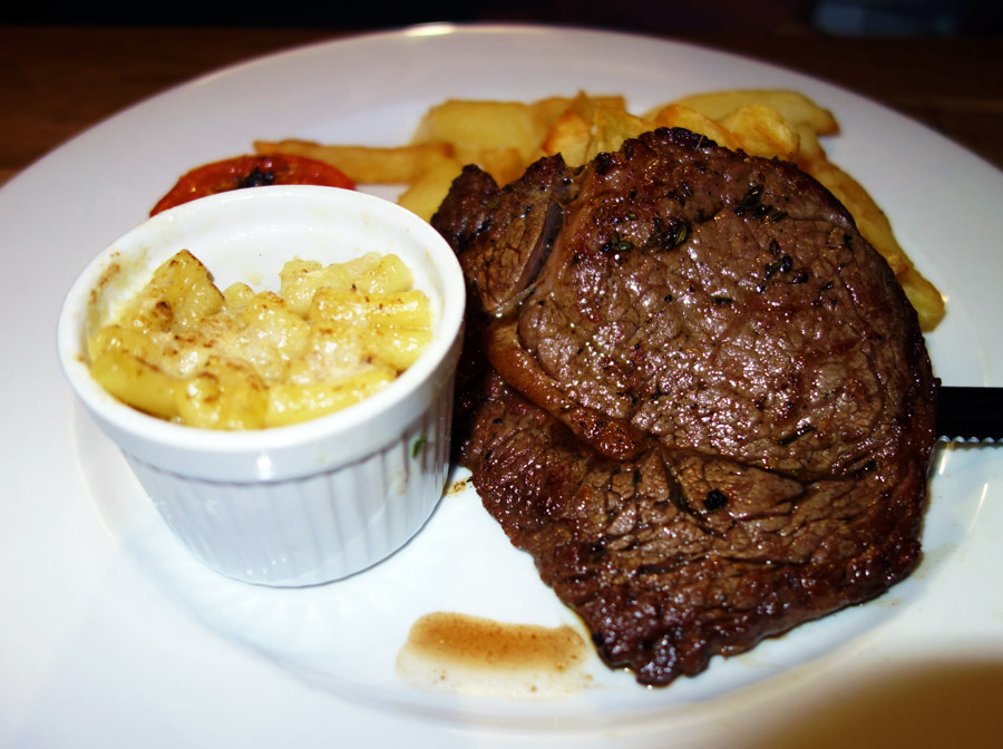 I was lucky to taste my dining companion’s Garlic Ribeye Steak, with crab infused pasta, hand cut chips and tomato. I am really quite fussy with steak, and any hint of tough chewiness and I’m peeved, but this was succulent and full of taste, the portions I tried were soft and delicious. The crab pasta was a stroke of genius, as it allowed the steak to creep onto, what is, after-all, a statement meu.. that seafood can be inventive, and also, served extremely well in the most land-locked city in Britain.