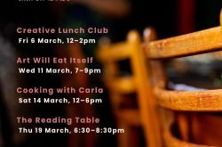 On 19 March, we launch The Reading Table, a supper club exploring literature through food. Guests are invited to bring a favourite recipe book, a novel, a journal, or an essay – whatever whets their appetite. The intention being to share a love of food as words, metaphors, and images with others. Nerdy foodies and curious appetites are very welcome. We’ll be creating a reading list from guest’s contributions for further inspiration.