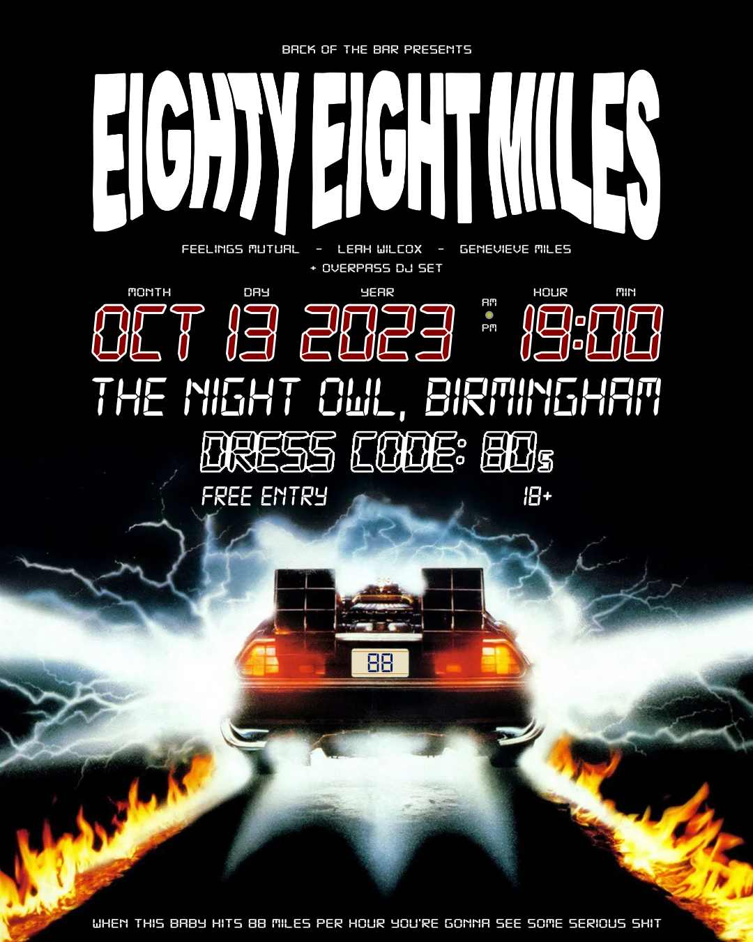 On quite possibly the spookiest day of the year (Friday 13th!) Back of the Bar presents an all-star lineup of local talent with Eighty Eight Miles headlining The Night Owl for an 80s-inspired indie rock party! Support on the night comes from Genevieve Miles, Leah Wilcox and Feelings Mutual plus you can expect spooktacular DJ sets from rising stars Overpass and Quentin Francis as it leads into iconic disco club night Voulez Vous. Drinks deals are available on the night too.