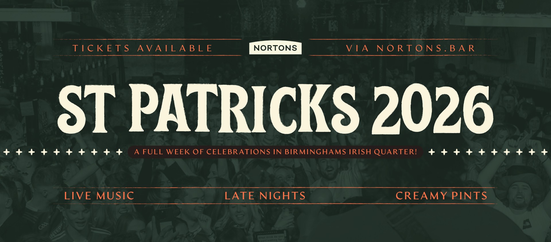 Independent Birmingham bar and grassroots music venue Nortons Digbeth has announced its annual St Patrick’s programme will take place between 11 and 18 March 2026.