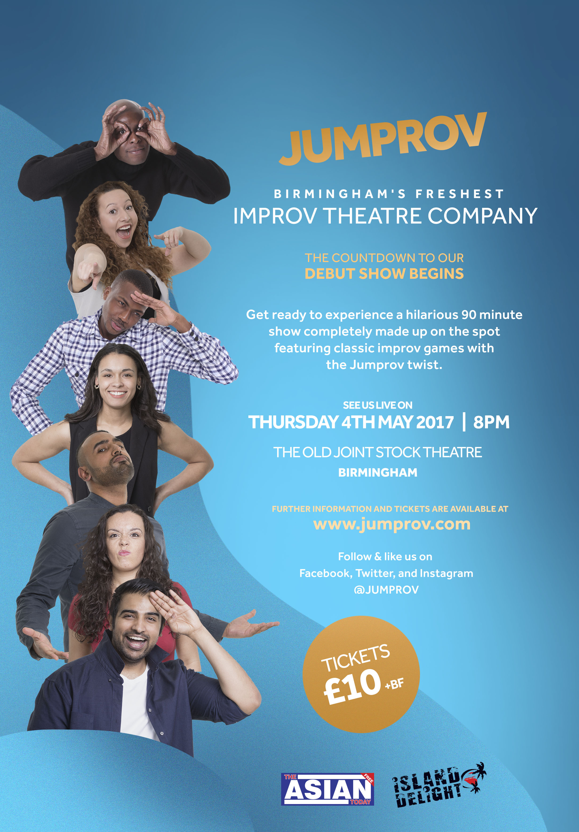 Jumprov was born straight out of Birmingham Improv Festival. I was there looking at the audiences, the acts and I noticed it was not representative of our diverse city. I decided to start my own improv theatre company which will help tackle the continuing issue of under representation in theatre, TV & film