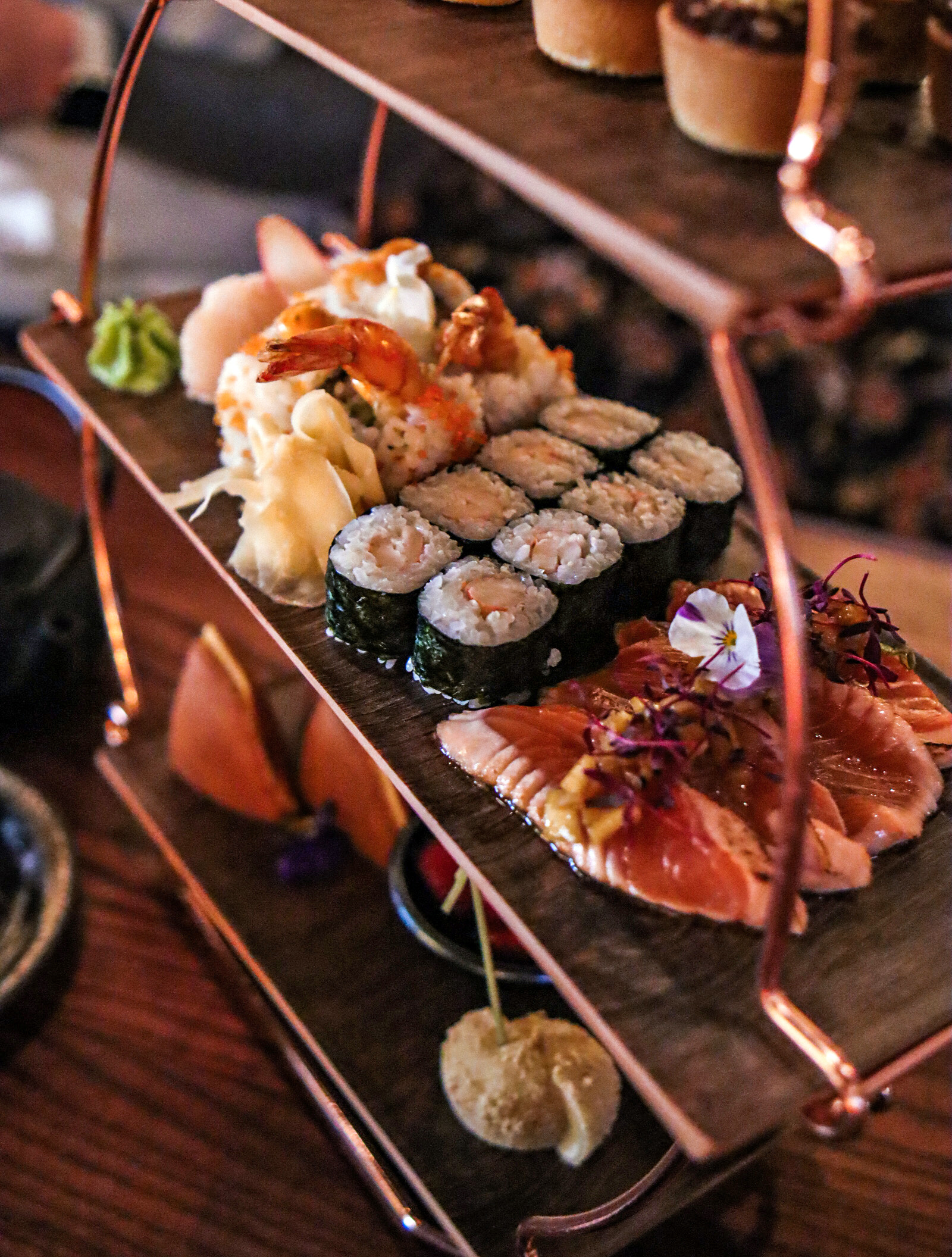 Talking us through our afternoon tea as it was brought out to us, suggesting what order to start but leaving that ultimately up to us of course. The middle shelf being the sushi, and technically the first section to dig into.
