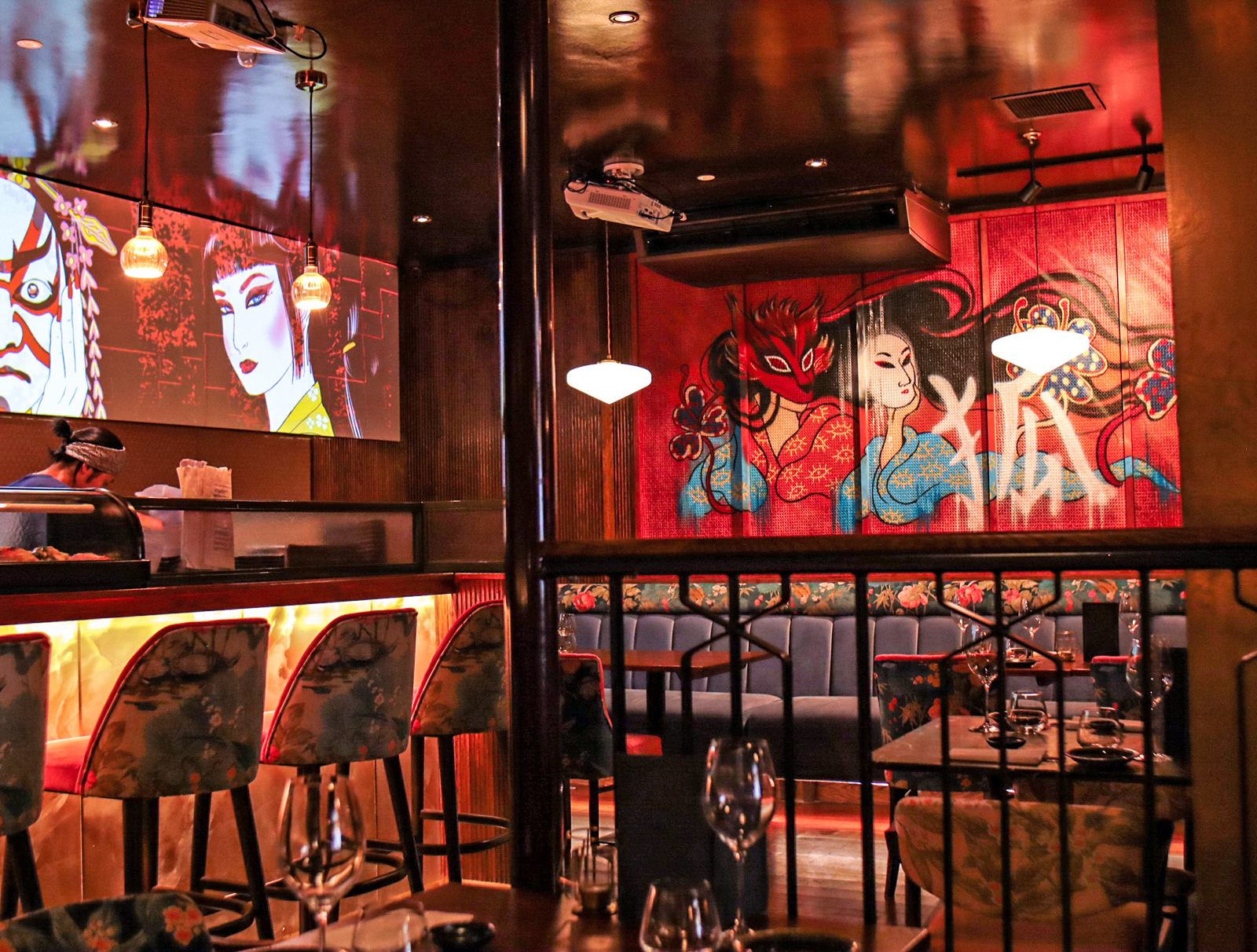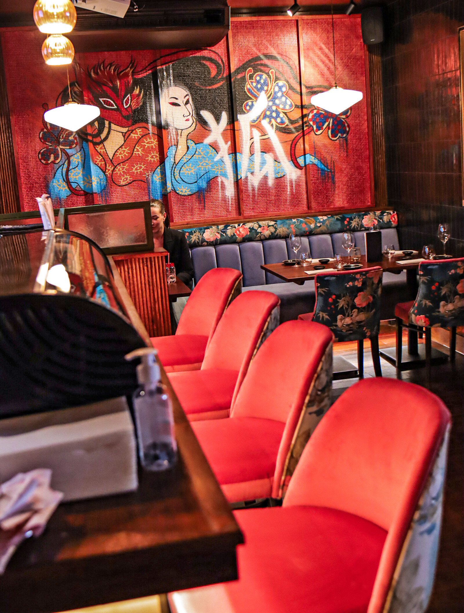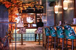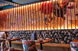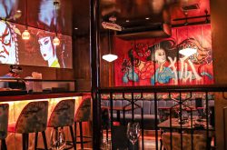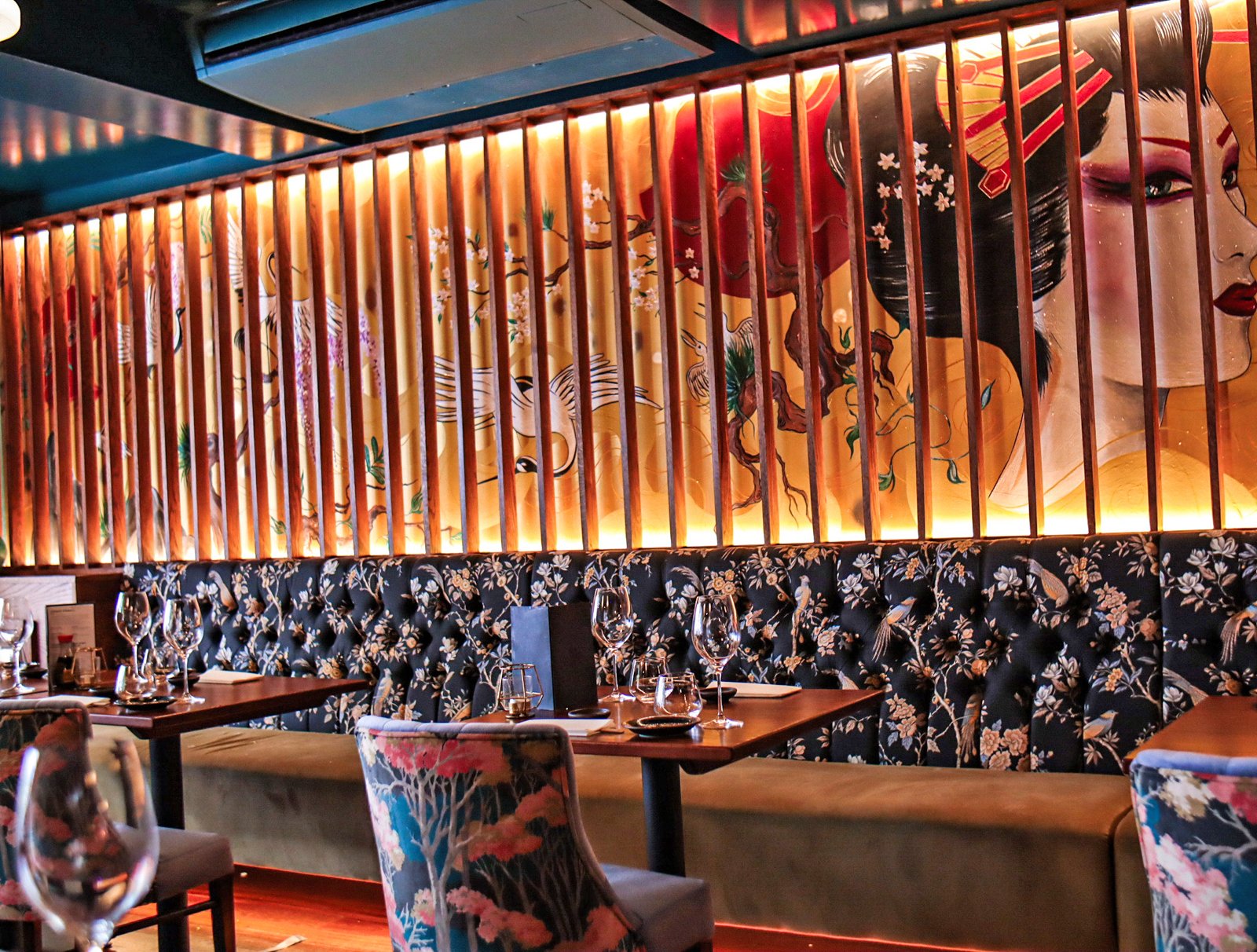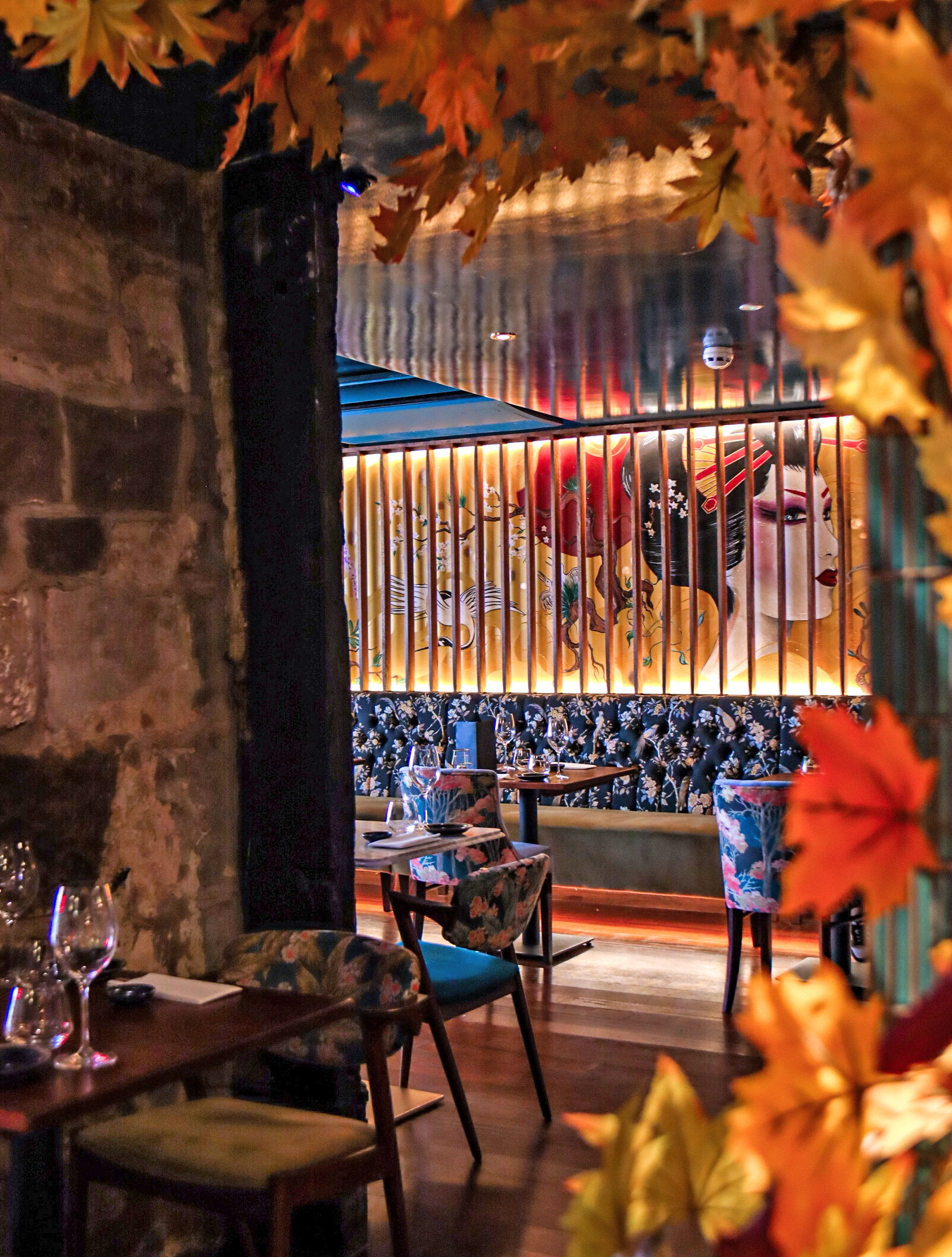 The beauty of Kibou is not just climbing the outer walls but in fact flourishing inside, being welcomed by a tree like beam and breath-taking art surrounding it’s diners while they enjoy their meals or drink with family and friends.