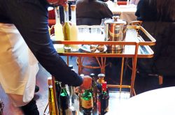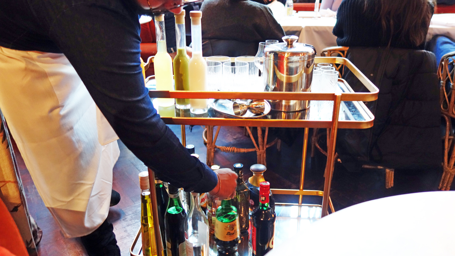 To finish, Robin returned, shuffling along with his ‘Happy Trolley’ of Italian liquor shots, and of course we had to sample these but I became confused with which order we were supposed to drink them in, so just went for a variety of colours, but most definitely with a pistachio theme to accompany the desserts.