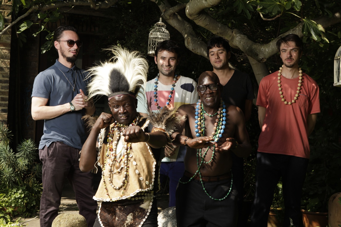 The group features Nyatiti master Joseph Nyamungu and Lou percussionist Charles Owoko, both from the Nyanza Province in Western Kenya, as well as London-based musicians Tom Skinner (drums), Jesse Hackett (vox/keys) and Louis Hackett (bass).