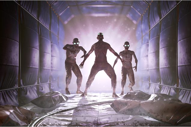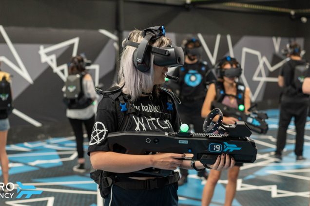 Warehouse scale free roam VR. Where you can play with up to 8 people all in the same game, competing or co-operating to survive your mission.
