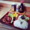Bento is an elaborate method of portioning a delicious selection of Japanese food. “Bento to go” for an office lunch or “eat in bento” meals. Bento is an extremely healthy way to eat.