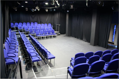 - Flexible theatre space which seats between 90 and 110 depending on configuration.