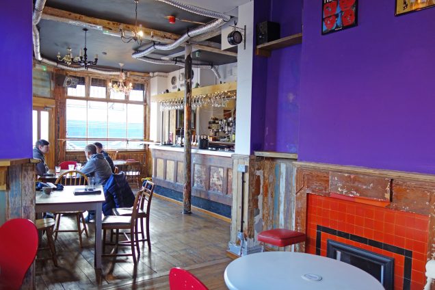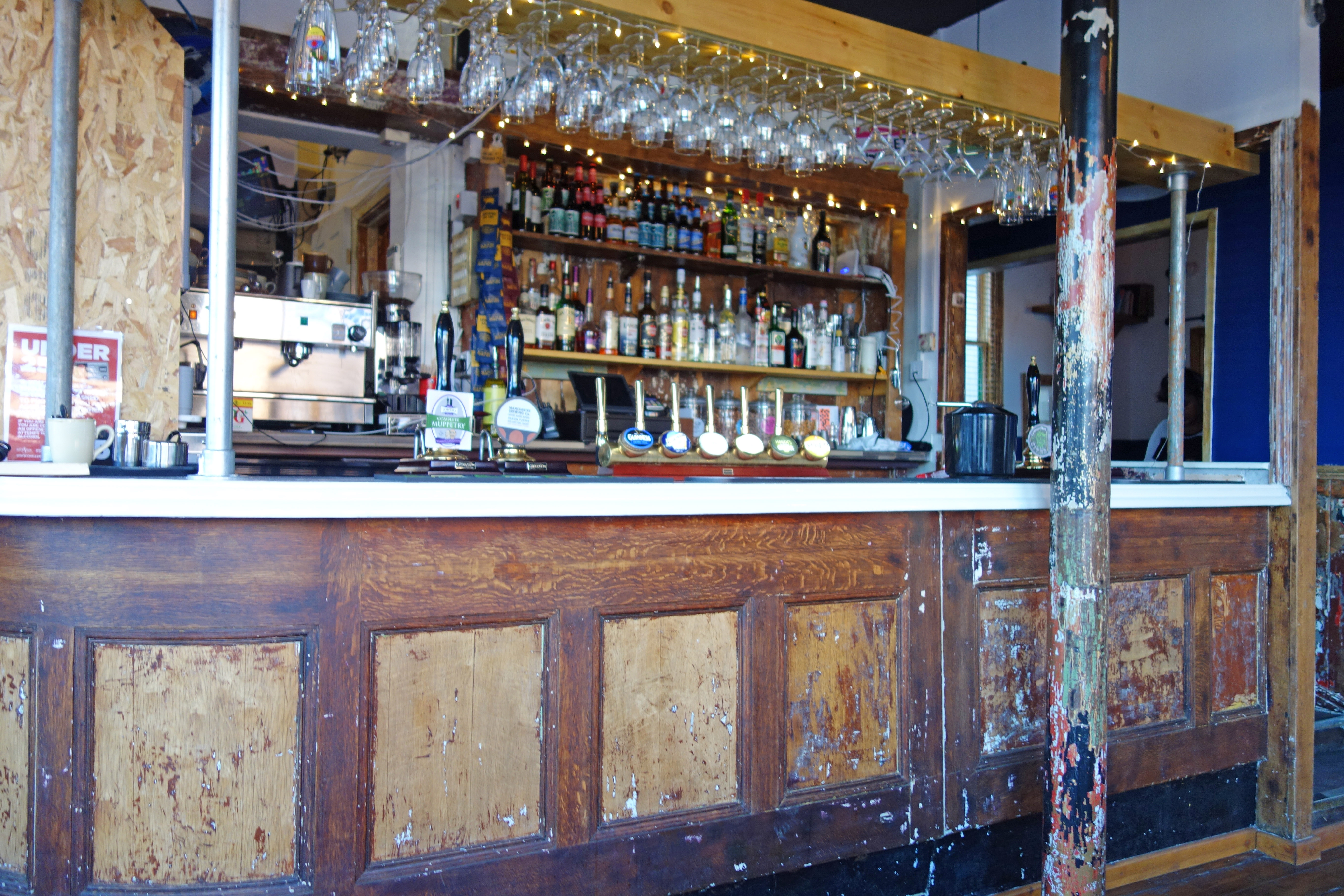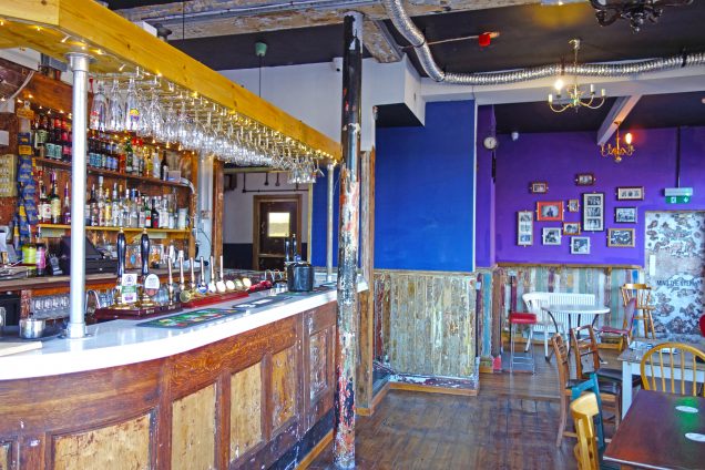 Inside you will find a beautiful old sanded-down bar, which is a main feature, a distressed wood interior with warm bright colours, and an assortment of junk shop style furniture.