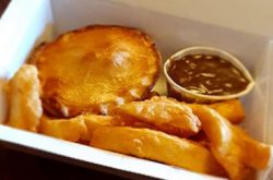 Priced at only £7 each, the freshly baked pies are slow cooked in homemade gravy and sauces and served with either mashed potato suitable for vegetarians or battered chips suitable for vegans, and gravy pots.