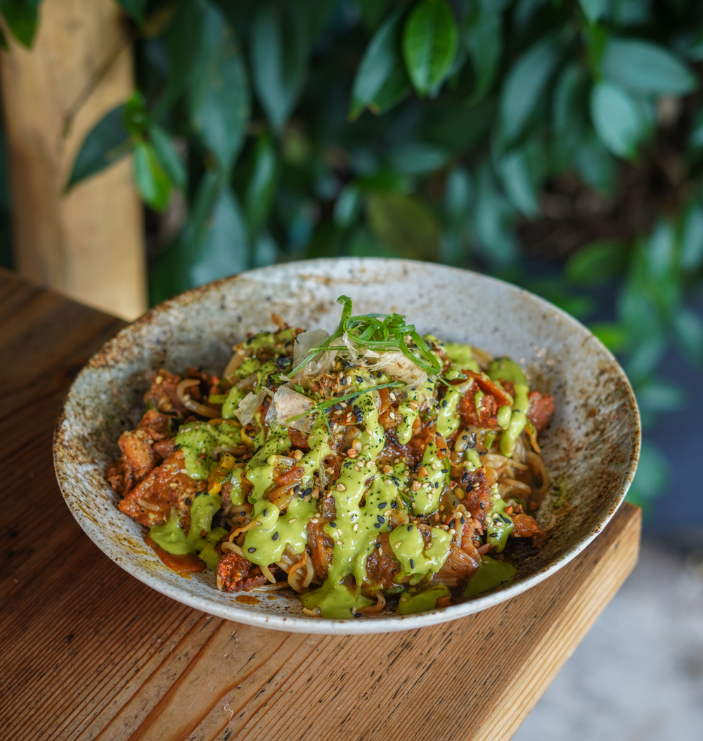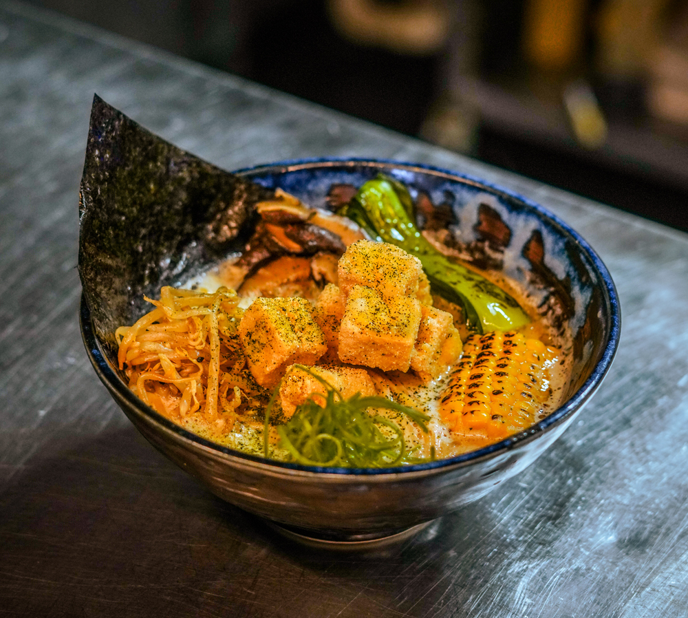 Popular dishes include Tebasaki Wings with Ginger and Furikake, Roast Duck Ramen with Sesame Bean Sprouts and Pak Choi, Katsu Curry with Sushi Rice and a choice of protein, and Sesame Miso Shoyu with Charred Sweetcorn and Nori.