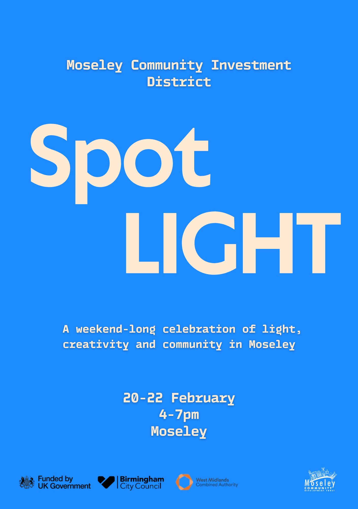 “There’s something for everyone — all ages, all interests — and we’ve worked hard to ensure everything is accessible and affordable. SpotLIGHT promises to be a fantastic weekend for Moseley, and we can’t wait to welcome everyone to enjoy it with us” said Lucy Kenny, Chief Executive Officer of Moseley Community Development Trust.