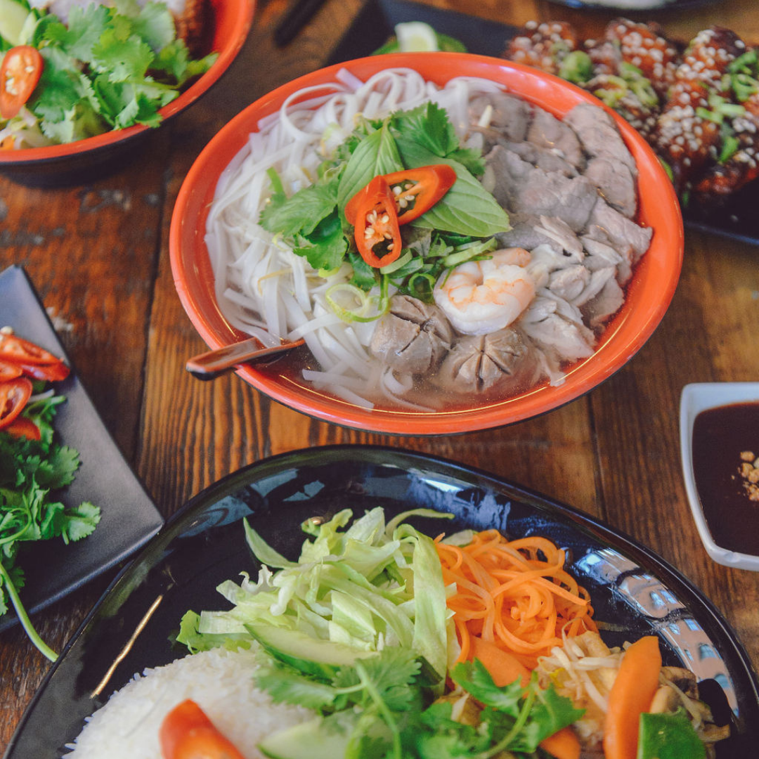 The focus of the menu is sharing: street food and small plates create a Vietnamese tapas-like experience for customers. Loved classic such as warming Pho and Bun Cha Ha Noi are available too.
