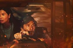 An evacuation order went out and McKay. who was on his way to take medication to his sick son, volunteered to pick up kids whose parents couldn’t collect them from their school and drive them to safety at the mustering point. Along with the 22 assorted youngsters, he’s accompanied by schoolteacher Mary Ludwig (America Ferrara) as co-driver, although in actuality her colleague Abbie Davis was also onboard for what, with communications with depot dispatcher Ruby (Ashlie Atkinson),cut off and unaware of the nature and spread of the inferno, becomes a tense five-hour 30-mile journey, navigating blocked roads, burning buildings and armed looters with very little water inside a bus rapidly heating up and the kids scared out of their lives.