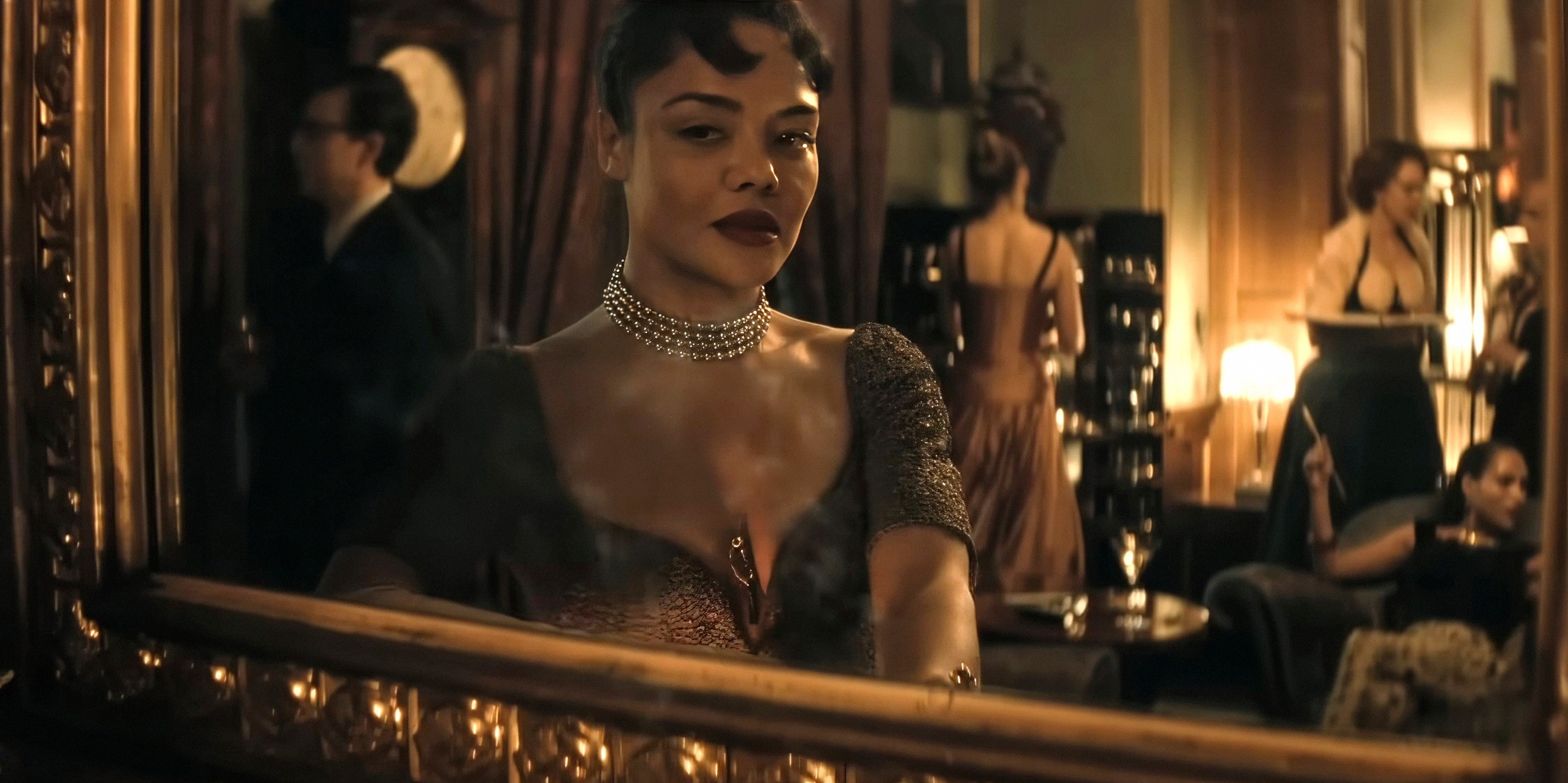 Candyman director Nia DaCosta takes a swerve into classical territory with this updated five act (with title cards) and no suicide take on Ibsen’s dour Hedda Gabbler (also embracing Chekhov’s gun in act one maxim), relocated from Norway to 1950s England and given a racial makeover with an awards buzz performance from a finely-accented Tessa Thompson (who starred in DaCosta’s Crossing The Line) as the scheming but vulnerable Hedda, an illegitimate manipulative free spirit who’s just wed well-born but bland academic George Tesman (Tom Bateman) and persuade him to purchase the sprawling mansion where she’s throwing a lavish (but no flowers) party. The reason being that, in debt up to his eyeballs, she needs Tom to be appointed to a newly vacant professorship, hence inviting the movers and shakers, specifically his superior, Professor Greenwood (Finbar Lynch), to get them on his side. Among the guests is also Judge Brack (Nicholas Pinnock), who facilitated the hous epirchase and who Hedda is screwing. Unfortunately, so too is the self-invited Eileen Lövborg (Nina Hoss), a gender switch from the play as Hedda’s former lover and classicist who is also after the job on the back of her new book on sexuality, the only manuscript of which she’s brought with her. A now sober alcoholic, Hedda intends to use her Dionysian get together to push her off the wagon and humiliate herself out of the running. But she also still carries a torch, something complicated by the presence of Eileen’s naïve new lover, and co-author Thea Clifton (Imogen Poots), herself an old friend of Hedda.
