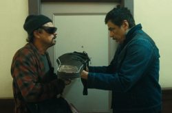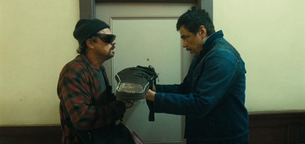 Fast forward 16 years to the strains of Steely Dan’s Dirty Work, and Bob, who got out of the game when their daughter was born, now slobs around in a plaid bathrobe and a beanie, drinking, taking drugs and playing a tough love daddy (no phones, no parties) to the teenage Willa (Chase Infiniti) who believes her mother died a hero to the cause. At which point, Lockjaw re-enters their lives. Desperate to become a member of the Christian right white supremacists cabal, Christmas Adventurers Club (Tony Golwyn among the leaders), he’s told them he’s never had carnal relations with a woman of colour. Which means eliminating the incriminating evidence that Willa represents. To which end, sending the militia to Baktan Cross, rounding up migrants as a pretext for finding Bob and Willa, the film basically becomes a catch and rescue chase movie by the two dysfunctional fathers, one from the left, one from the right, with the abducted Willa at the centre, her karata Sensei (Benicio Del Toro), who happens to run an immigrant underground railway, joining forces with Bob.